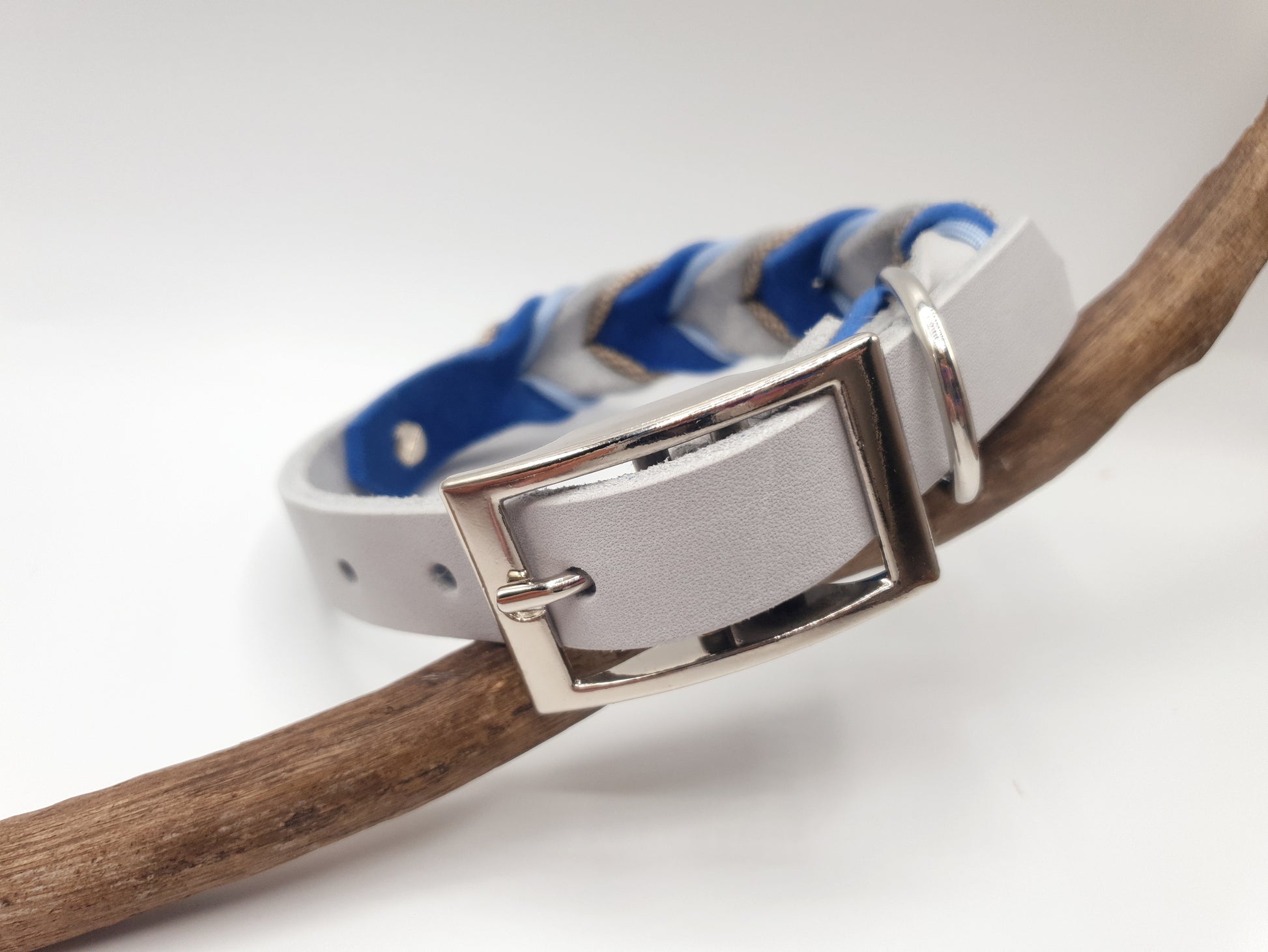 Material Halsband: 100 % echtes Fettleder, grau & blau