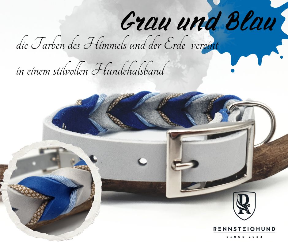 Stilvoll, robust und handgefertigt – das Rennsteighund-Halsband in Blau-Grau
